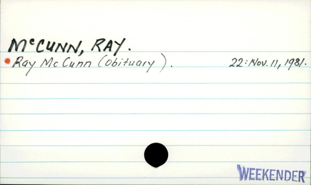 Dunedin Public Libraries (24th Feb 2021). McCunn, Ray. In Website Dunedin Public Libraries. Retrieved 27th Mar 2026 02:08, from https://dunedin.recollect.co.nz/nodes/view/173938