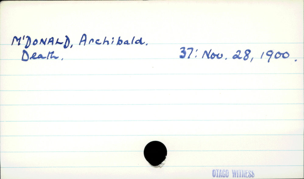 Dunedin Public Libraries (25th Feb 2021). McDonald, Archibald. In Website Dunedin Public Libraries. Retrieved 27th Mar 2026 03:38, from https://dunedin.recollect.co.nz/nodes/view/174113