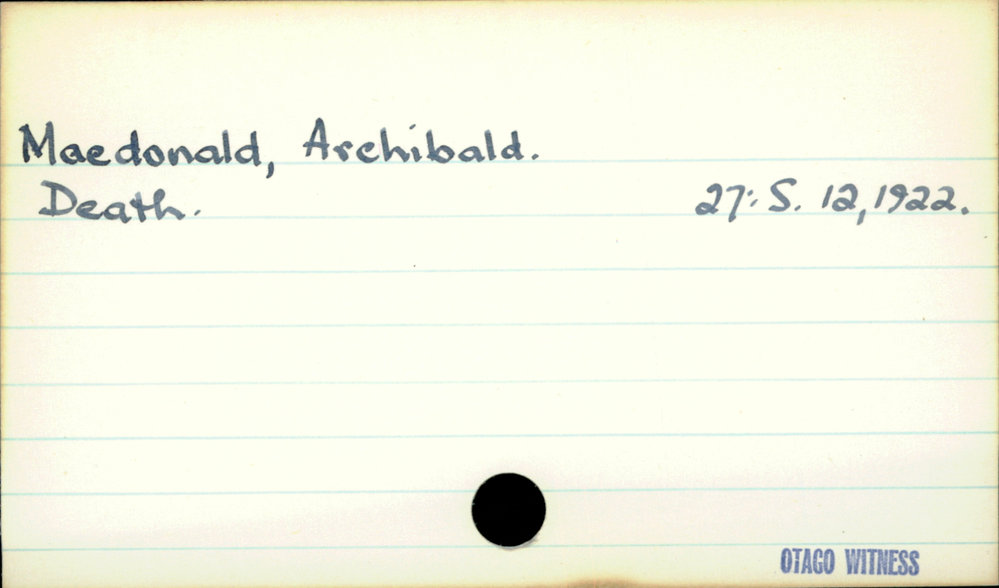 Dunedin Public Libraries (25th Feb 2021). Macdonald, Archibald. In Website Dunedin Public Libraries. Retrieved 27th Mar 2026 03:39, from https://dunedin.recollect.co.nz/nodes/view/174115