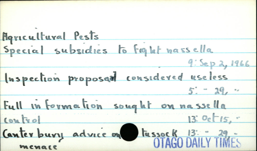Dunedin Public Libraries (26th May 2018). Agricultural Pests.. In Website Dunedin Public Libraries. Retrieved 27th Mar 2026 14:16, from https://dunedin.recollect.co.nz/nodes/view/1742