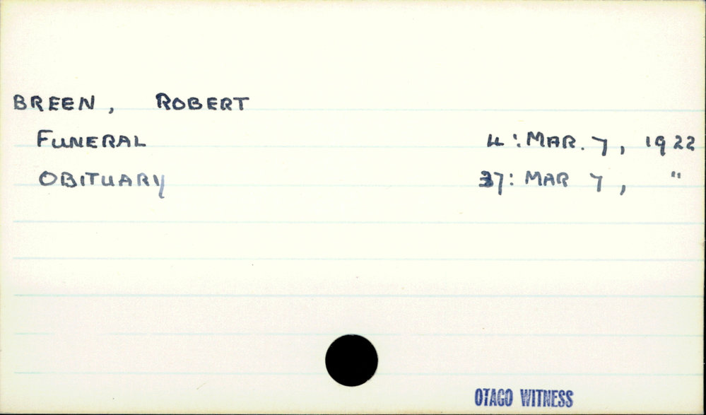 Dunedin Public Libraries (10th Jan 2019). Breen, Robert. In Website Dunedin Public Libraries. Retrieved 2nd Apr 2026 17:45, from https://dunedin.recollect.co.nz/nodes/view/17432