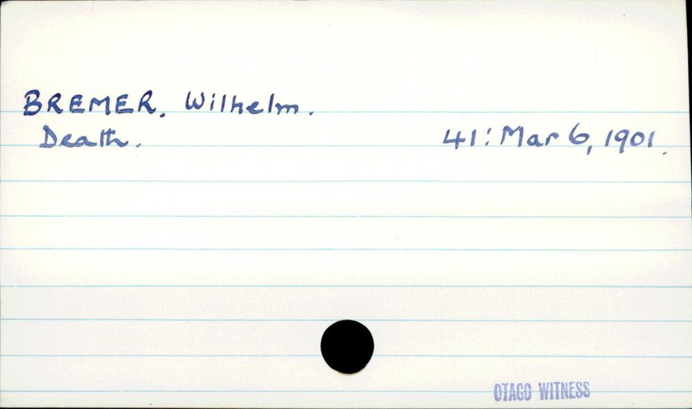 Dunedin Public Libraries (10th Jan 2019). BREMER, Wilhelm . In Website Dunedin Public Libraries. Retrieved 2nd Apr 2026 17:46, from https://dunedin.recollect.co.nz/nodes/view/17452