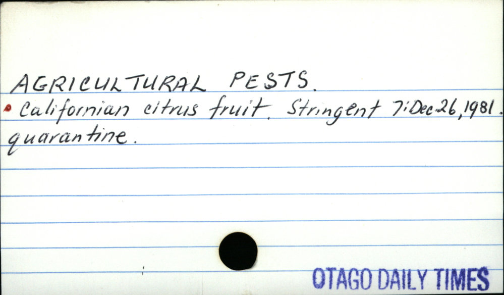 Dunedin Public Libraries (26th May 2018). Agricultural Pests.. In Website Dunedin Public Libraries. Retrieved 27th Mar 2026 14:15, from https://dunedin.recollect.co.nz/nodes/view/1748