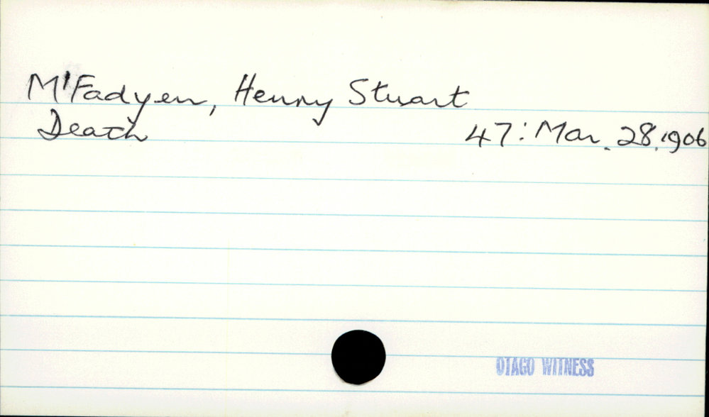 Dunedin Public Libraries (7th Mar 2021). McFadyen, Henry Stuart. In Website Dunedin Public Libraries. Retrieved 27th Mar 2026 03:38, from https://dunedin.recollect.co.nz/nodes/view/174901
