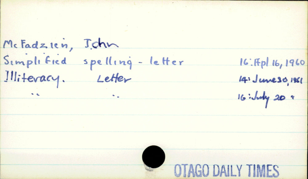 Dunedin Public Libraries (7th Mar 2021). McFadzien, John. In Website Dunedin Public Libraries. Retrieved 27th Mar 2026 03:39, from https://dunedin.recollect.co.nz/nodes/view/174906