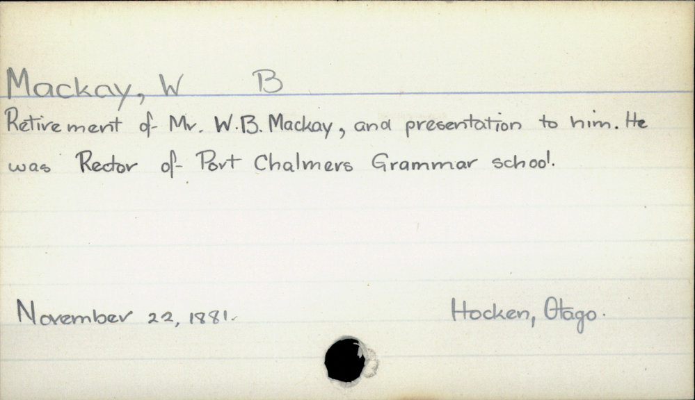 Dunedin Public Libraries (31st Mar 2021). MacKay, W.B. In Website Dunedin Public Libraries. Retrieved 27th Mar 2026 05:24, from https://dunedin.recollect.co.nz/nodes/view/176320