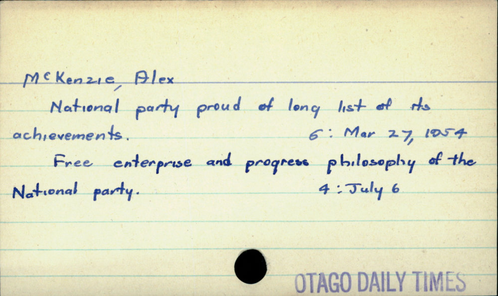 Dunedin Public Libraries (29th Mar 2021). McKenzie, Alex. In Website Dunedin Public Libraries. Retrieved 27th Mar 2026 03:39, from https://dunedin.recollect.co.nz/nodes/view/176509