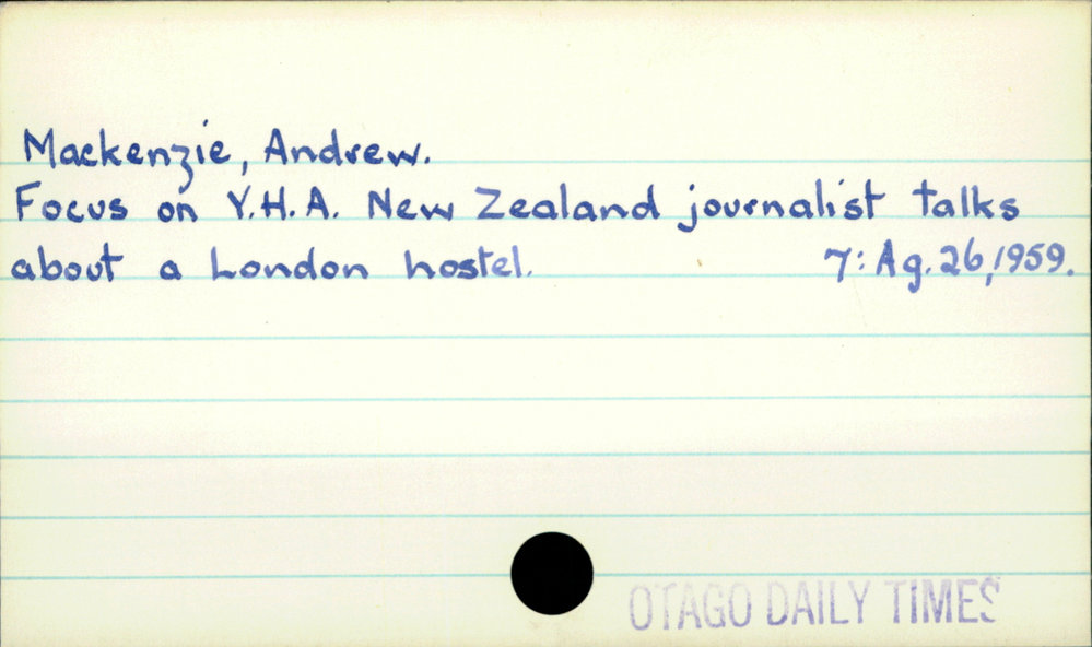 Dunedin Public Libraries (29th Mar 2021). Mackenzie, Andrew.. In Website Dunedin Public Libraries. Retrieved 27th Mar 2026 03:46, from https://dunedin.recollect.co.nz/nodes/view/176525