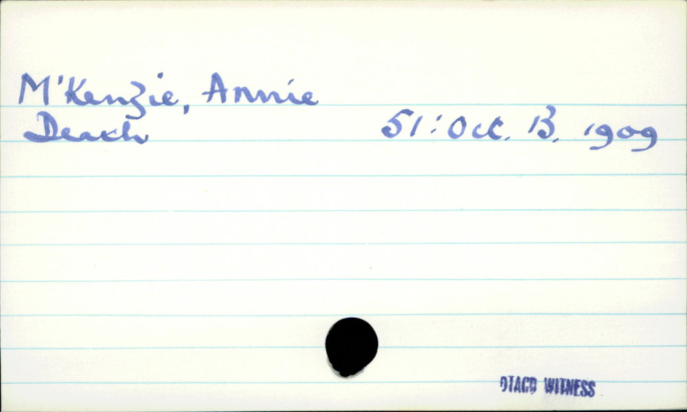 Dunedin Public Libraries (25th Mar 2021). M'Kenzie, Annie. In Website Dunedin Public Libraries. Retrieved 27th Mar 2026 03:39, from https://dunedin.recollect.co.nz/nodes/view/176527