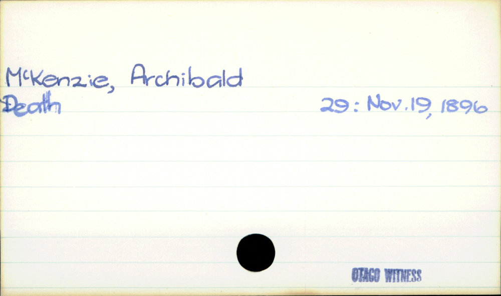 Dunedin Public Libraries (25th Mar 2021). McKenzie, Archibald. In Website Dunedin Public Libraries. Retrieved 27th Mar 2026 03:39, from https://dunedin.recollect.co.nz/nodes/view/176528