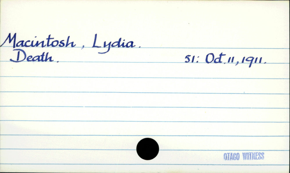 Dunedin Public Libraries (2nd Apr 2021). Macintosh, Lydia. In Website Dunedin Public Libraries. Retrieved 27th Mar 2026 03:38, from https://dunedin.recollect.co.nz/nodes/view/177286