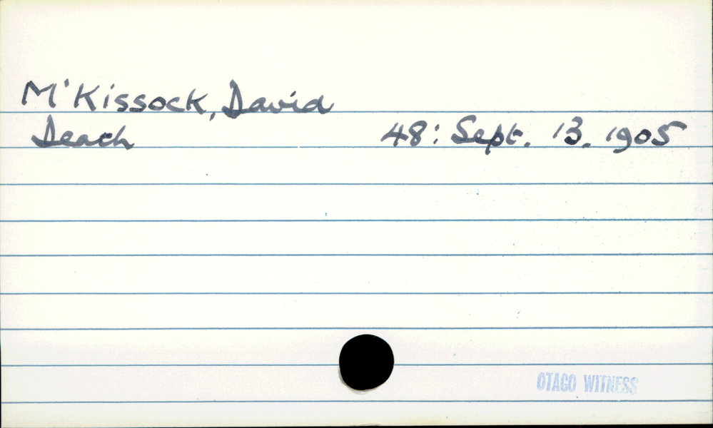 Dunedin Public Libraries (3rd Apr 2021). McKissock, David. In Website Dunedin Public Libraries. Retrieved 27th Mar 2026 03:41, from https://dunedin.recollect.co.nz/nodes/view/177303