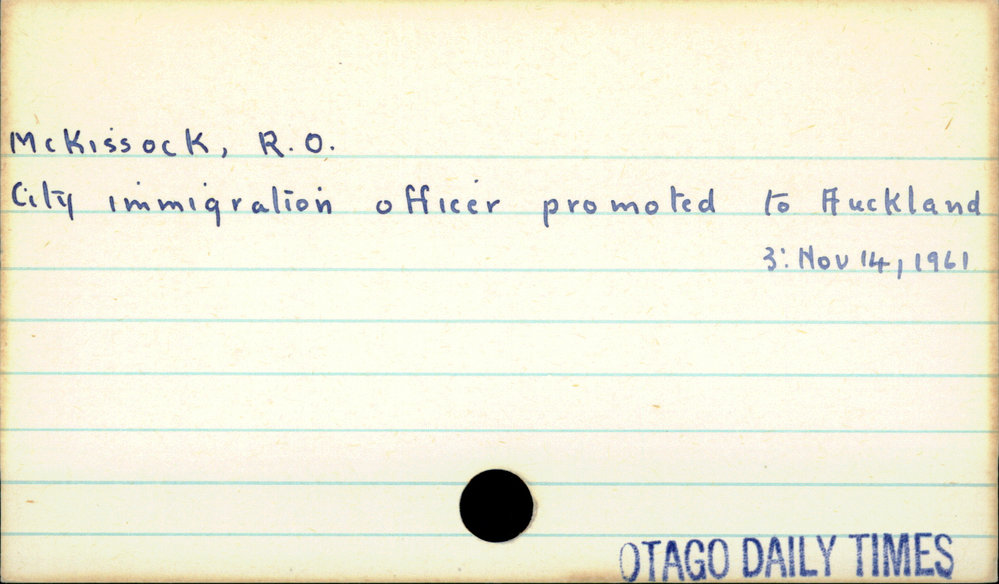 Dunedin Public Libraries (2nd Apr 2021). McKissock, R. O.. In Website Dunedin Public Libraries. Retrieved 27th Mar 2026 03:40, from https://dunedin.recollect.co.nz/nodes/view/177305