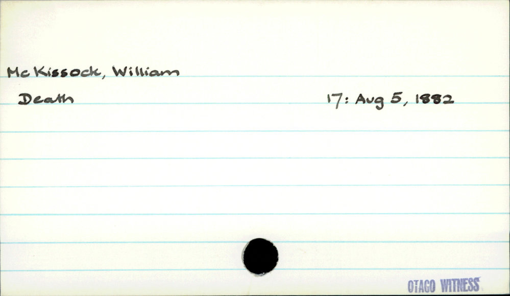 Dunedin Public Libraries (2nd Apr 2021). McKissock, William. In Website Dunedin Public Libraries. Retrieved 27th Mar 2026 03:39, from https://dunedin.recollect.co.nz/nodes/view/177306