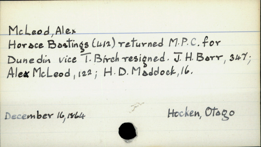 Dunedin Public Libraries (3rd Apr 2021). McLeod, Alex. In Website Dunedin Public Libraries. Retrieved 27th Mar 2026 05:24, from https://dunedin.recollect.co.nz/nodes/view/177329