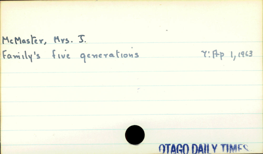 Dunedin Public Libraries (6th Apr 2021). McMaster, Mrs. J.. In Website Dunedin Public Libraries. Retrieved 27th Mar 2026 00:25, from https://dunedin.recollect.co.nz/nodes/view/177627