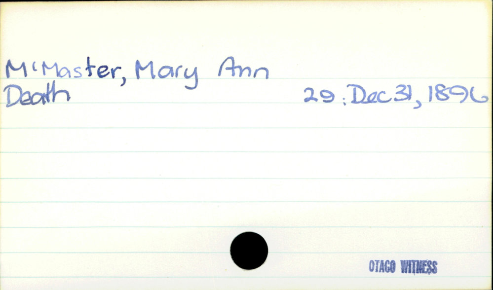 Dunedin Public Libraries (6th Apr 2021). McMaster, Mary Ann. In Website Dunedin Public Libraries. Retrieved 27th Mar 2026 02:06, from https://dunedin.recollect.co.nz/nodes/view/177634