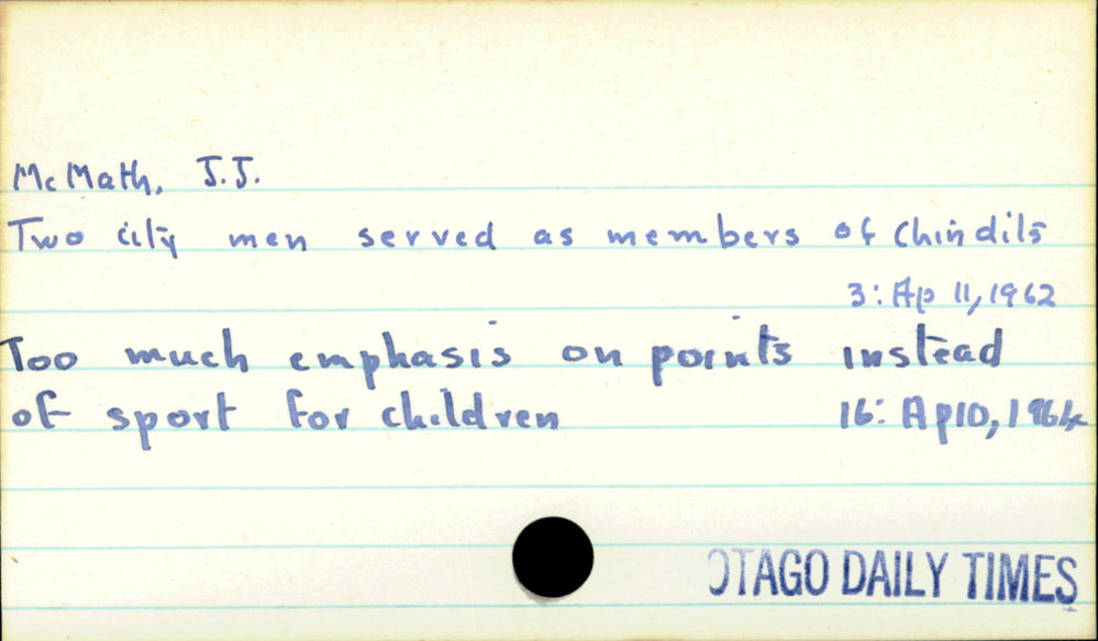 Dunedin Public Libraries (6th Apr 2021). McMath, J. J.. In Website Dunedin Public Libraries. Retrieved 27th Mar 2026 00:25, from https://dunedin.recollect.co.nz/nodes/view/177638
