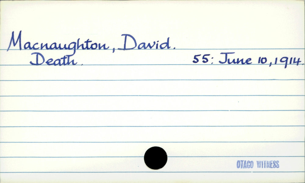 Dunedin Public Libraries (11th Apr 2021). Macnaughton, David. In Website Dunedin Public Libraries. Retrieved 27th Mar 2026 02:07, from https://dunedin.recollect.co.nz/nodes/view/178039