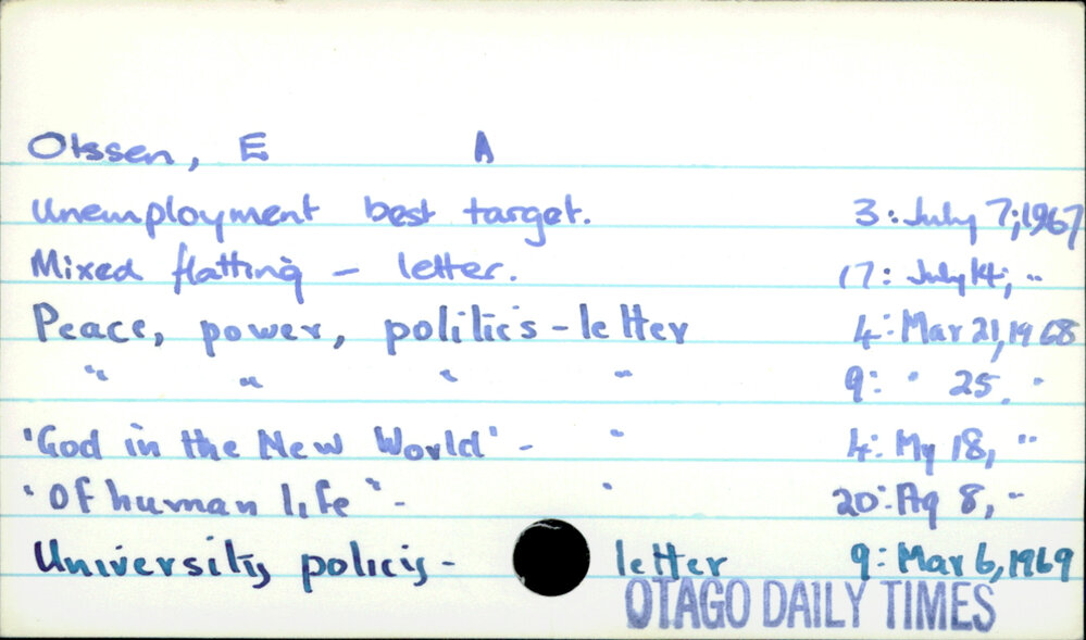 Dunedin Public Libraries (17th Sep 2021). Olssen, E. A. In Website Dunedin Public Libraries. Retrieved 27th Mar 2026 02:05, from https://dunedin.recollect.co.nz/nodes/view/192154