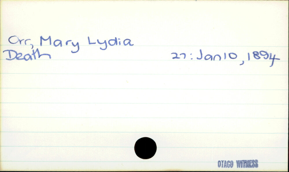 Dunedin Public Libraries (20th Jan 2023). Orr, Mary Lydia. In Website Dunedin Public Libraries. Retrieved 27th Mar 2026 02:05, from https://dunedin.recollect.co.nz/nodes/view/192597