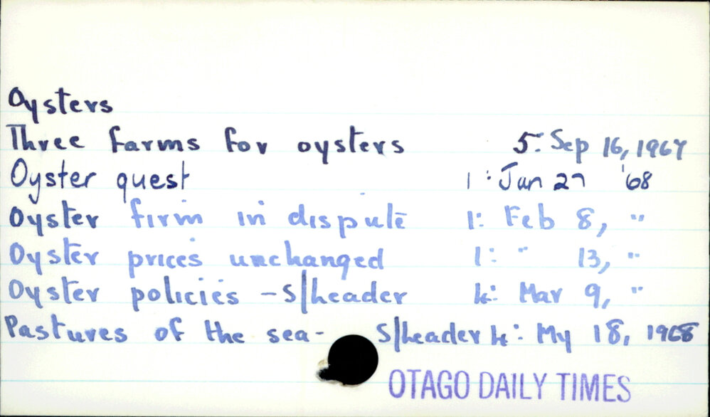Dunedin Public Libraries (21st Oct 2021). Oysters. In Website Dunedin Public Libraries. Retrieved 6th Apr 2026 04:26, from https://dunedin.recollect.co.nz/nodes/view/194973