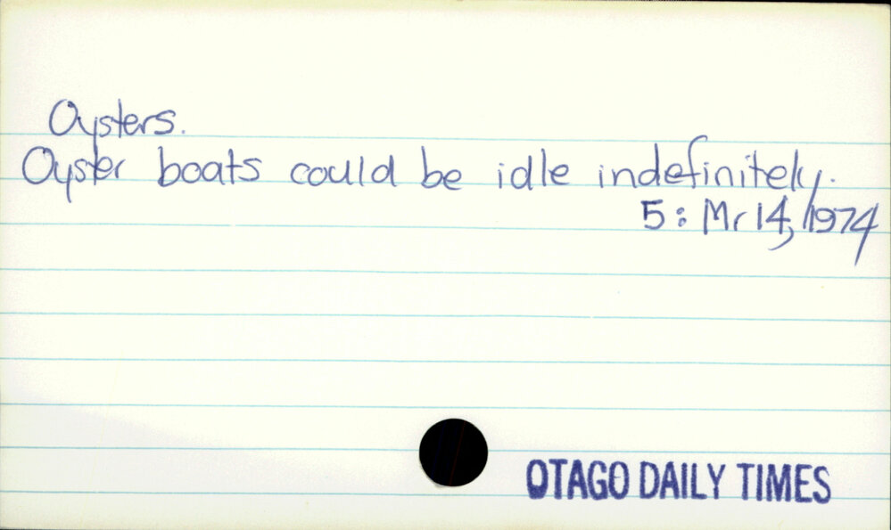 Dunedin Public Libraries (21st Oct 2021). Oysters. In Website Dunedin Public Libraries. Retrieved 6th Apr 2026 04:26, from https://dunedin.recollect.co.nz/nodes/view/194985