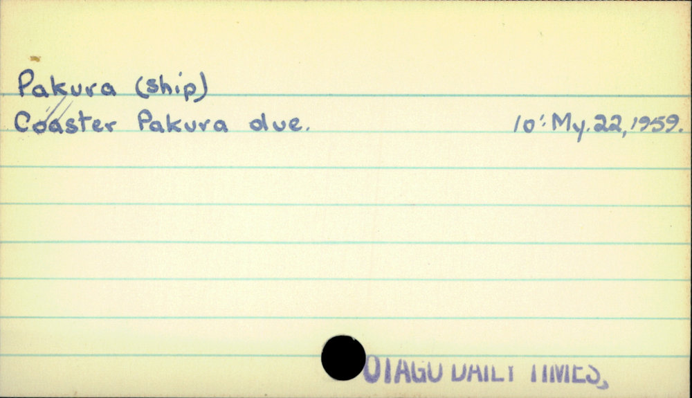 Dunedin Public Libraries (31st Oct 2021). Pakura (Ship). In Website Dunedin Public Libraries. Retrieved 9th Apr 2026 14:01, from https://dunedin.recollect.co.nz/nodes/view/195325