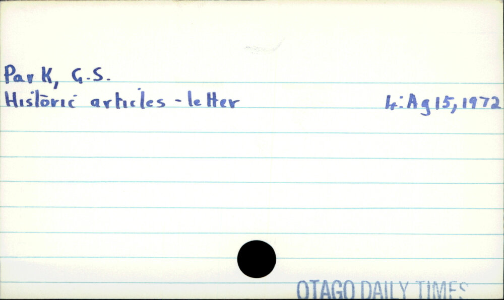 Dunedin Public Libraries (3rd Nov 2021). Park, G S. In Website Dunedin Public Libraries. Retrieved 9th Apr 2026 19:25, from https://dunedin.recollect.co.nz/nodes/view/195809