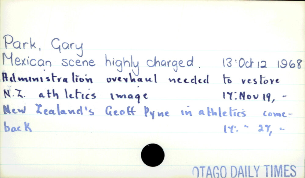 Dunedin Public Libraries (3rd Nov 2021). Park, Gary. In Website Dunedin Public Libraries. Retrieved 9th Apr 2026 19:25, from https://dunedin.recollect.co.nz/nodes/view/195813