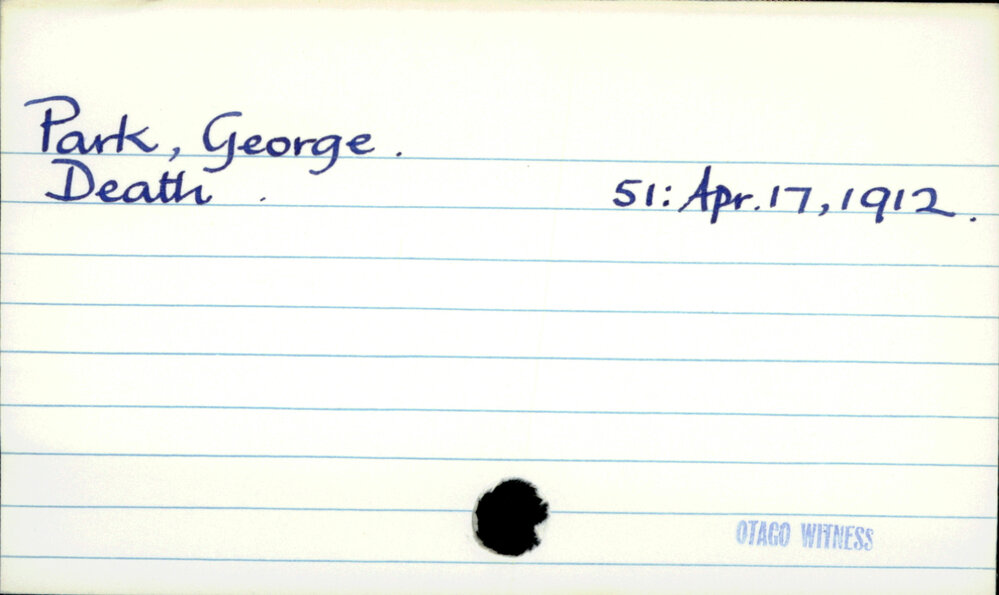 Dunedin Public Libraries (3rd Nov 2021). Park, George. In Website Dunedin Public Libraries. Retrieved 9th Apr 2026 19:31, from https://dunedin.recollect.co.nz/nodes/view/195815