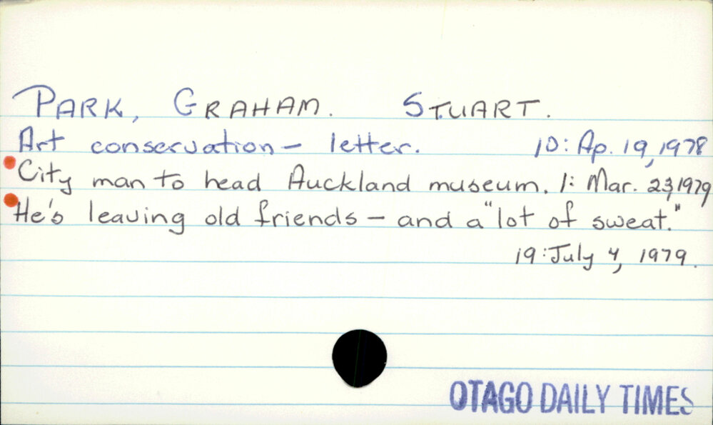 Dunedin Public Libraries (3rd Nov 2021). Park, Graham Stuart. In Website Dunedin Public Libraries. Retrieved 9th Apr 2026 19:25, from https://dunedin.recollect.co.nz/nodes/view/195818