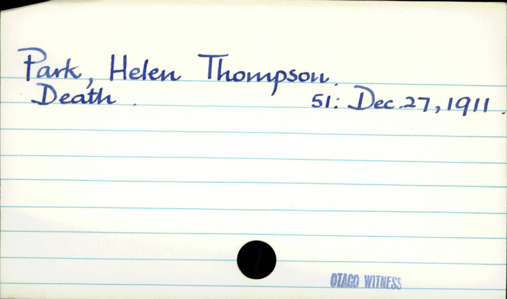 Dunedin Public Libraries (3rd Nov 2021). Park, Helen Thompson. In Website Dunedin Public Libraries. Retrieved 9th Apr 2026 19:31, from https://dunedin.recollect.co.nz/nodes/view/195821