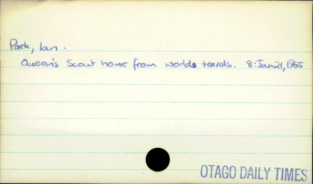 Dunedin Public Libraries (3rd Nov 2021). Park, Ian. In Website Dunedin Public Libraries. Retrieved 9th Apr 2026 19:25, from https://dunedin.recollect.co.nz/nodes/view/195822