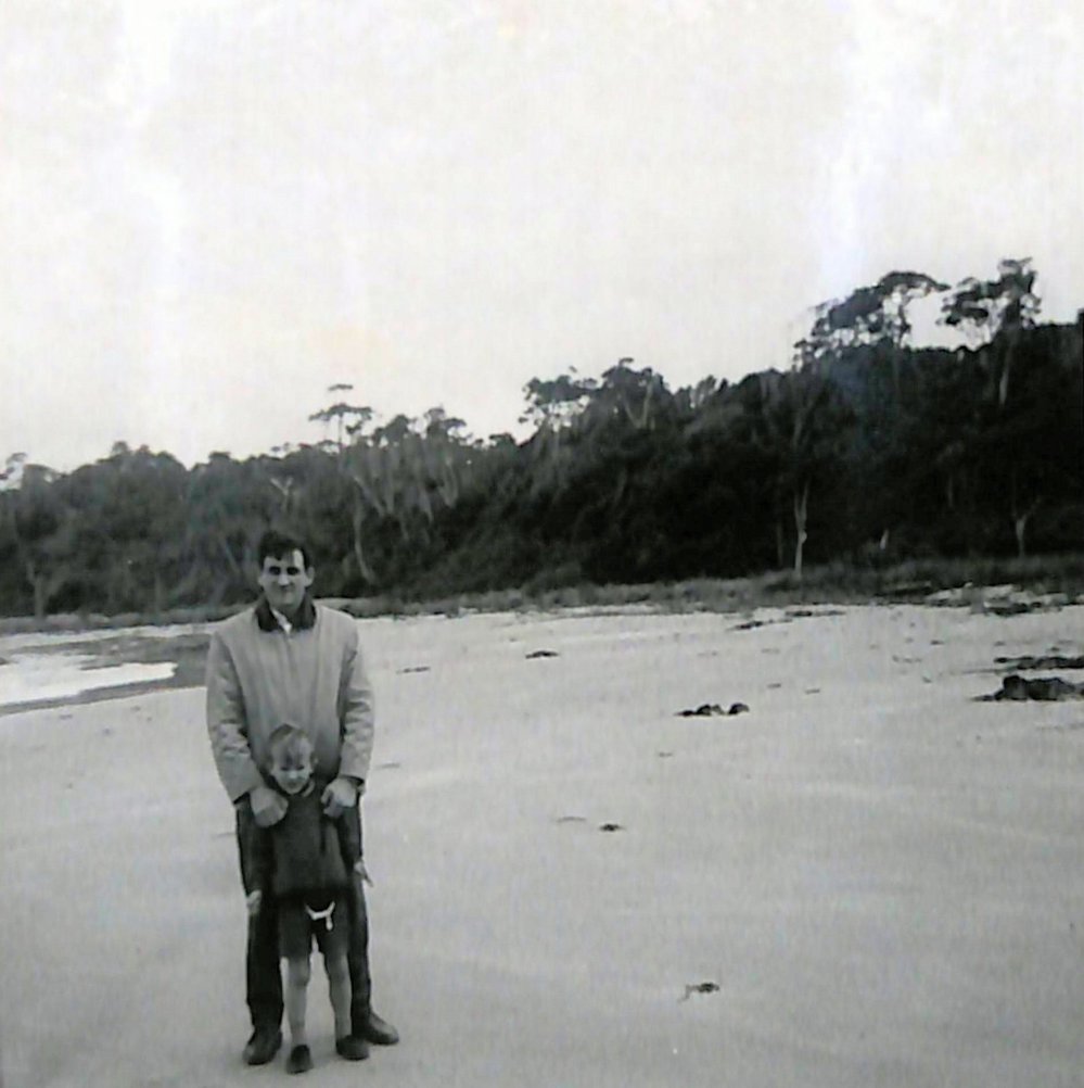 Allan Langston with his youngest son at Papatowai Beach, The Catlins.