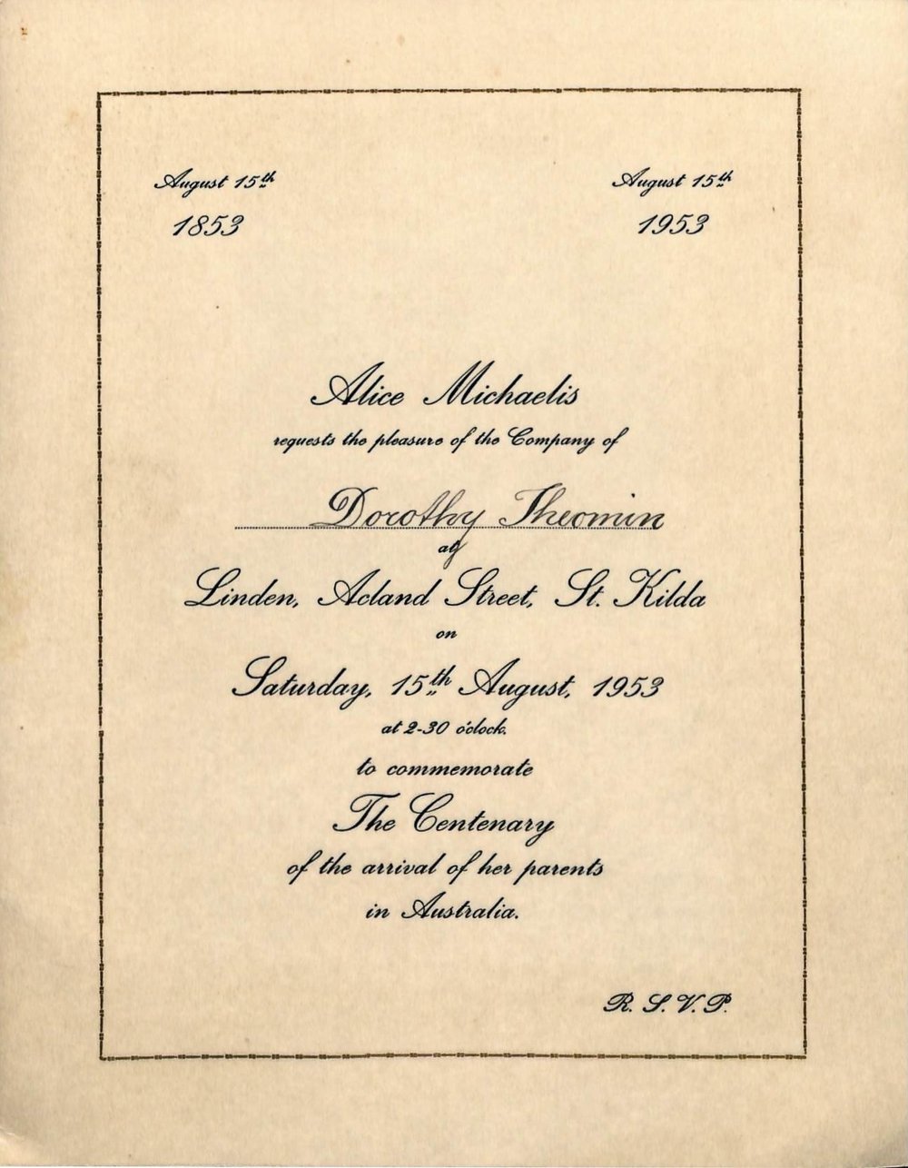 Dunedin Public Libraries (24th Aug 2016). Invitation to Dorothy Theomin. In Website Dunedin Public Libraries. Retrieved 19th Mar 2026 20:02, from https://dunedin.recollect.co.nz/nodes/view/200296