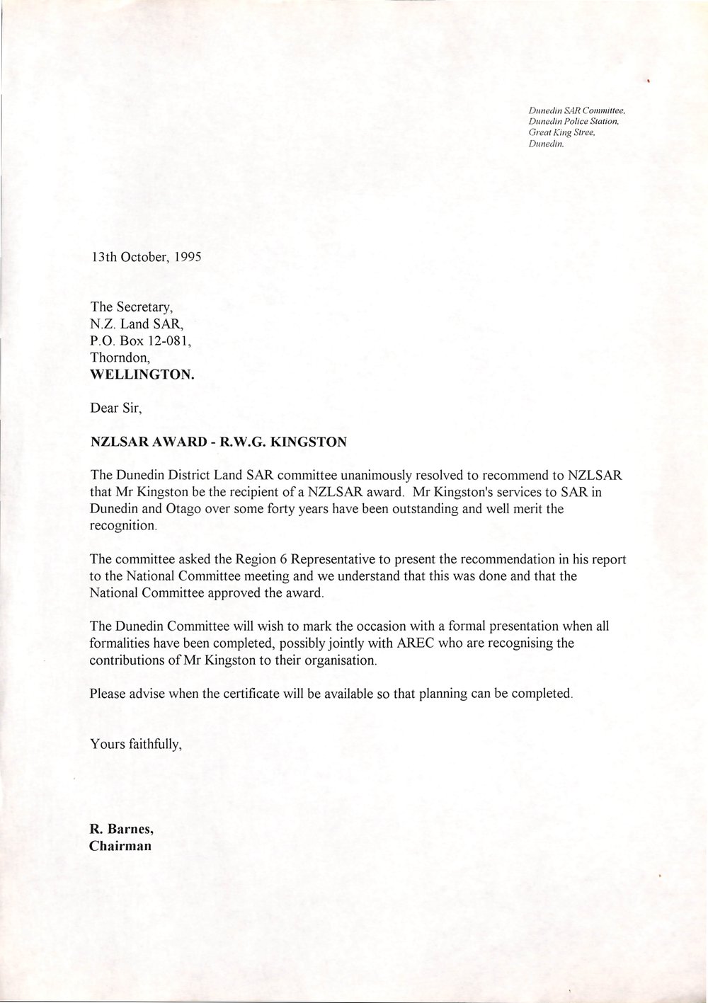 Dunedin Public Libraries (30th May 2017). NZLSAR award R.W.G Kingston. In Website Dunedin Public Libraries. Retrieved 19th Mar 2026 01:41, from https://dunedin.recollect.co.nz/nodes/view/201027