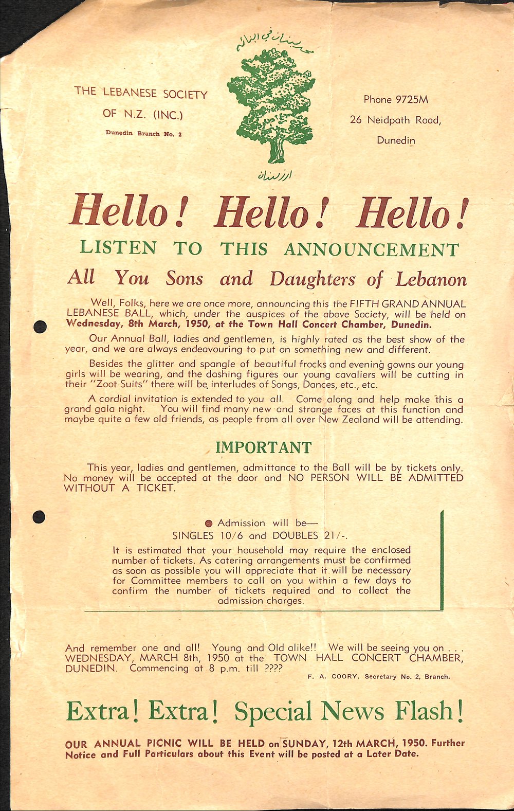Dunedin Public Libraries (8th Feb 2018). Fifth Grand Annual Lebanese Ball. In Website Dunedin Public Libraries. Retrieved 12th Apr 2026 11:01, from https://dunedin.recollect.co.nz/nodes/view/201475