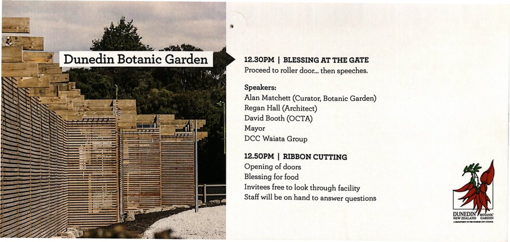 Invitation to opening of new Propagation House at Dunedin Botanic Garden