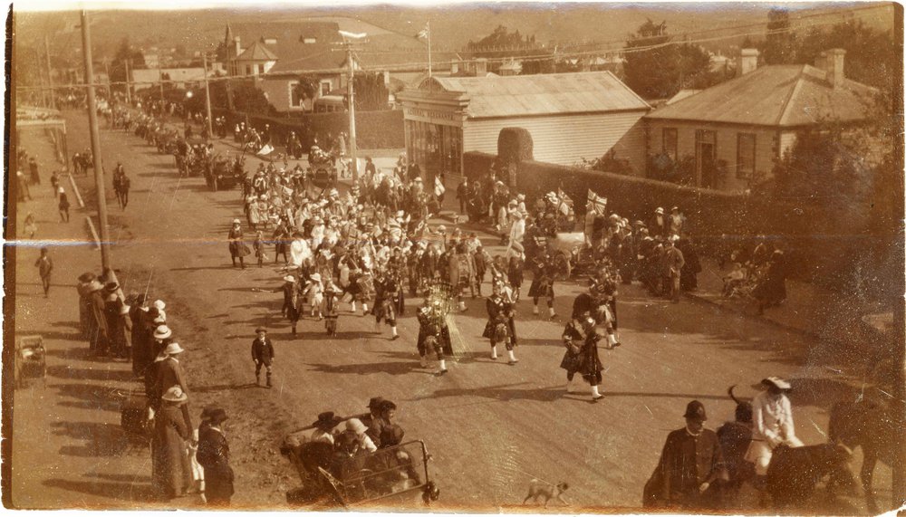 Dunedin Public Libraries (6th Jul 2018). Pipe band leads the Peace Parade in Mosgiel.. In Website Dunedin Public Libraries. Retrieved 4th Apr 2026 07:49, from https://dunedin.recollect.co.nz/nodes/view/201976