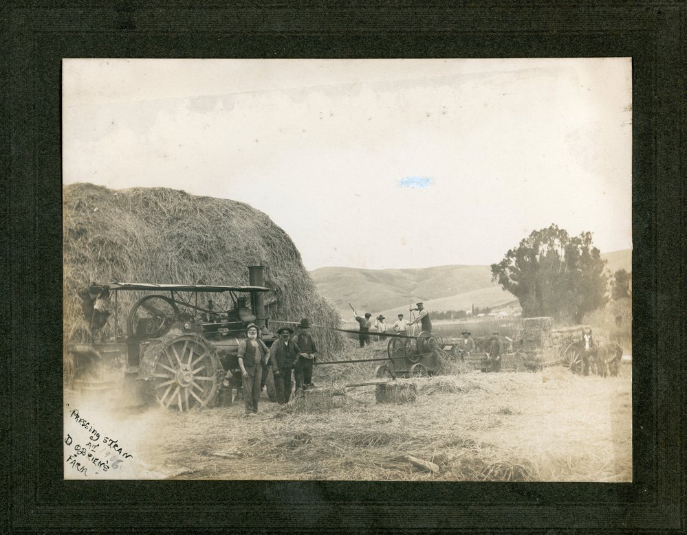 Dunedin Public Libraries (25th Jan 2019). Harvesting scene at D. O'Brien's - pressing straw. Near Wingatui with Gladstone Road in the background. In Website Dunedin Public Libraries. Retrieved 12th Apr 2026 14:47, from https://dunedin.recollect.co.nz/nodes/view/202075