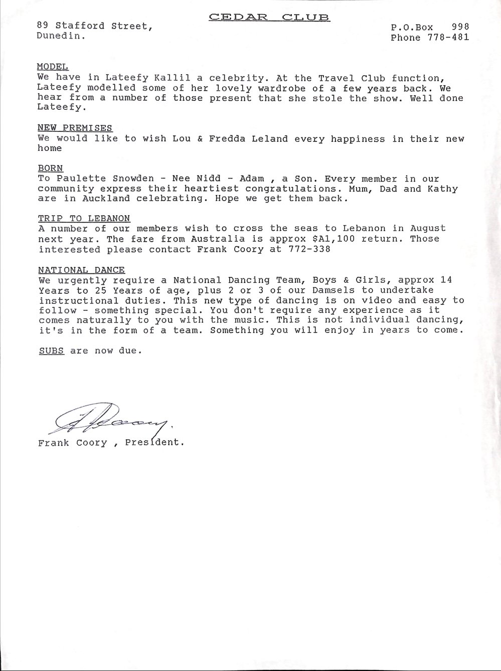 Dunedin Public Libraries (1st Jul 2019). Cedars Club Newsletter Dunedin NZ. In Website Dunedin Public Libraries. Retrieved 19th Mar 2026 00:07, from https://dunedin.recollect.co.nz/nodes/view/202420