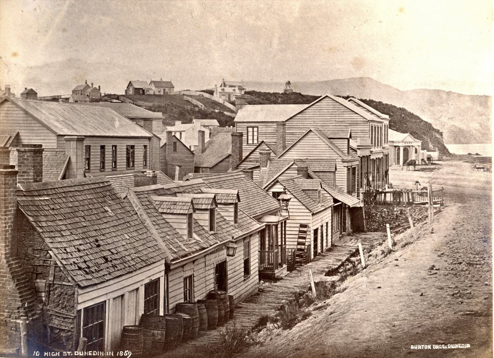 Dunedin Public Libraries (7th Apr 2021). High Street, Dunedin 1859. In Website Dunedin Public Libraries. Retrieved 19th Mar 2026 14:46, from https://dunedin.recollect.co.nz/nodes/view/205972