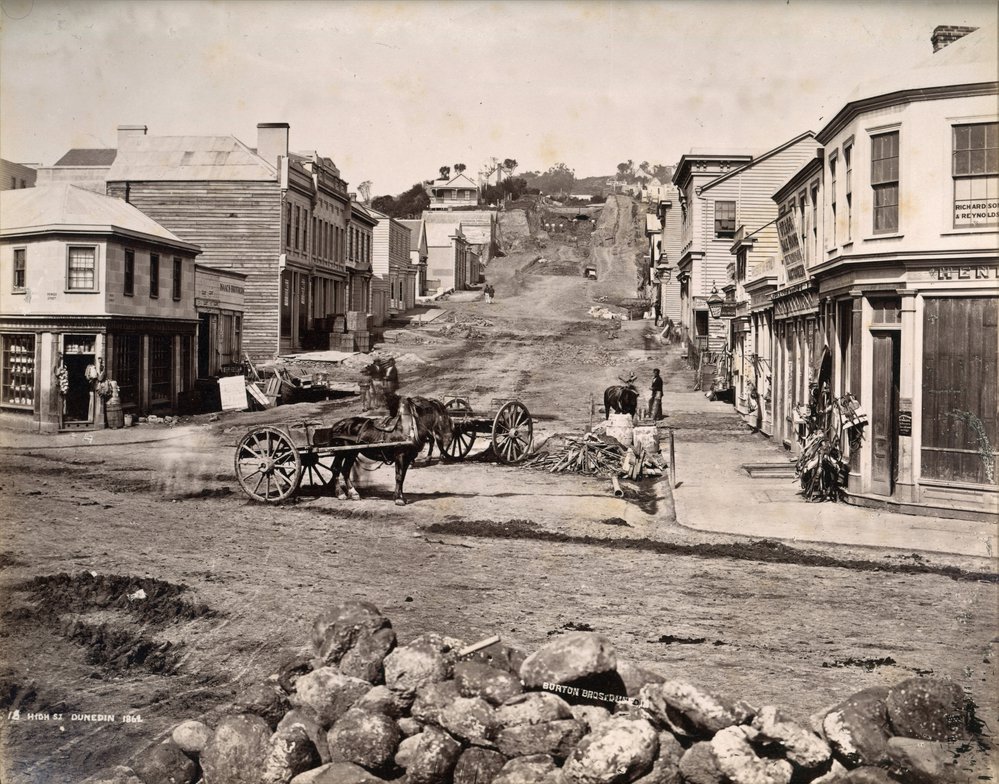 Dunedin Public Libraries (7th Apr 2021). High Street, Dunedin 1861. In Website Dunedin Public Libraries. Retrieved 19th Mar 2026 14:46, from https://dunedin.recollect.co.nz/nodes/view/206012