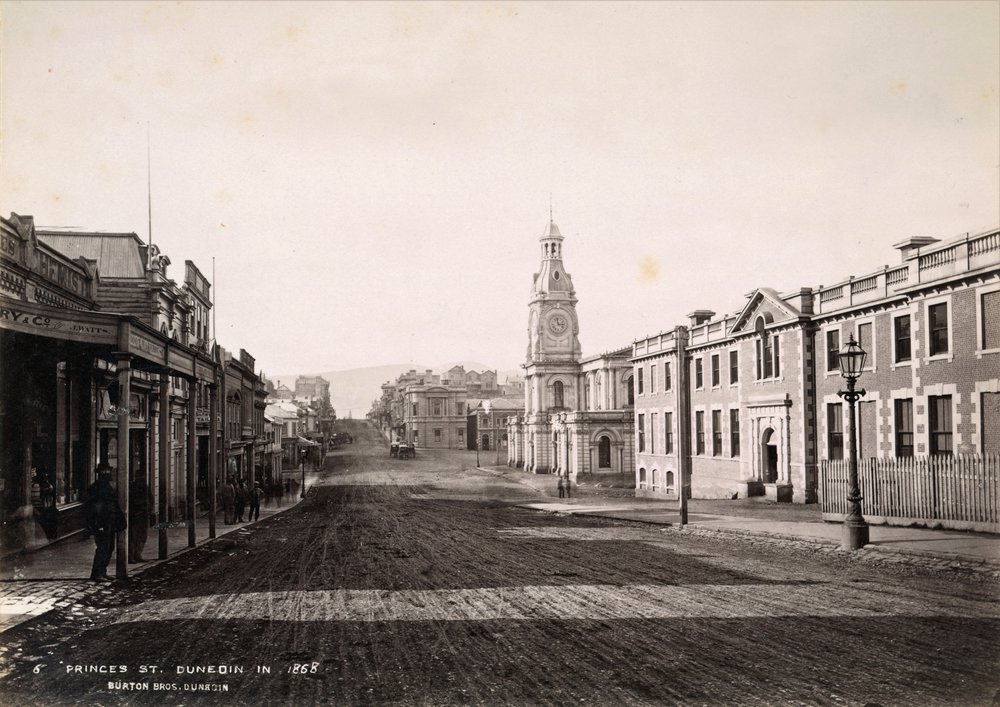 Dunedin Public Libraries (7th Apr 2021). Princes Street, Dunedin in 1868 . In Website Dunedin Public Libraries. Retrieved 19th Mar 2026 14:46, from https://dunedin.recollect.co.nz/nodes/view/206289
