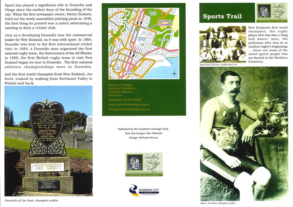 Dunedin Public Libraries (22nd Jun 2022). Southern Heritage Trust Cemetery Trails: Sports Trail. In Website Dunedin Public Libraries. Retrieved 18th Mar 2026 22:35, from https://dunedin.recollect.co.nz/nodes/view/215311