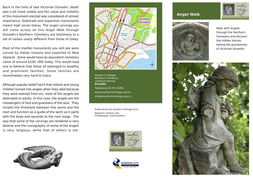 Dunedin Public Libraries (22nd Jun 2022). Southern Heritage Trust Cemetery Trails: Angel Walk. In Website Dunedin Public Libraries. Retrieved 18th Mar 2026 22:34, from https://dunedin.recollect.co.nz/nodes/view/215321