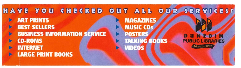 Dunedin Public Libraries (13th Jul 2022). Mike Hamblyn Heritage Bookmark Collection. In Website Dunedin Public Libraries. Retrieved 12th Apr 2026 14:47, from https://dunedin.recollect.co.nz/nodes/view/215697