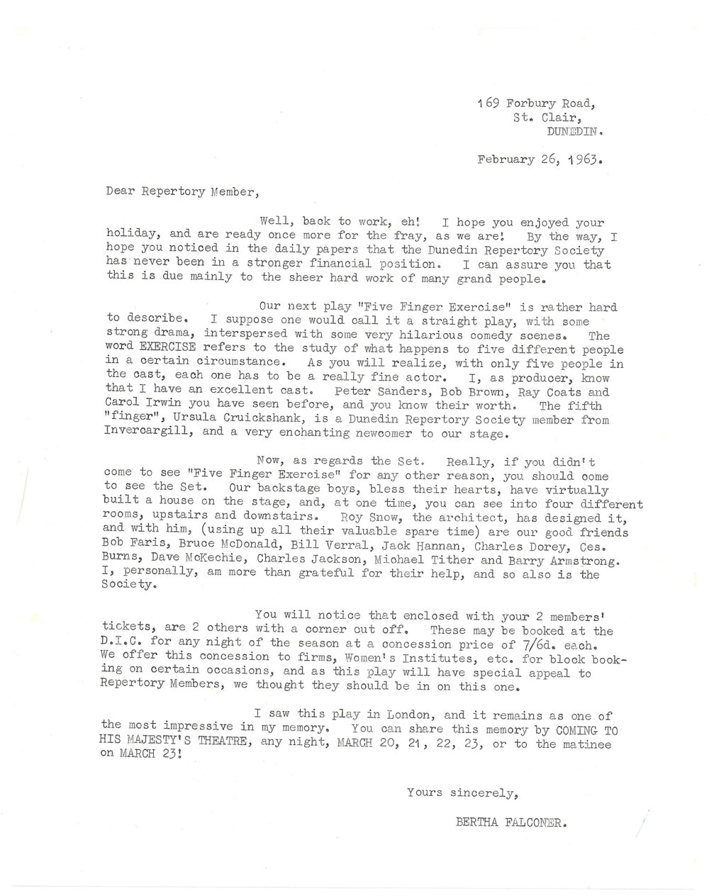 Dunedin Public Libraries (11th Oct 2022). Dunedin Repertory Society form letters to members. In Website Dunedin Public Libraries. Retrieved 19th Mar 2026 10:31, from https://dunedin.recollect.co.nz/nodes/view/216234