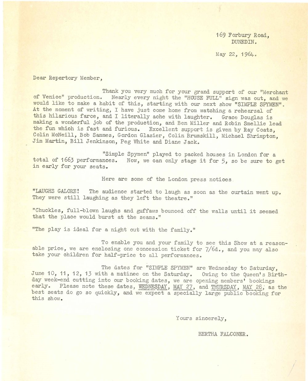 Dunedin Public Libraries (11th Oct 2022). Dunedin Repertory Society form letters to members. In Website Dunedin Public Libraries. Retrieved 19th Mar 2026 10:31, from https://dunedin.recollect.co.nz/nodes/view/216241